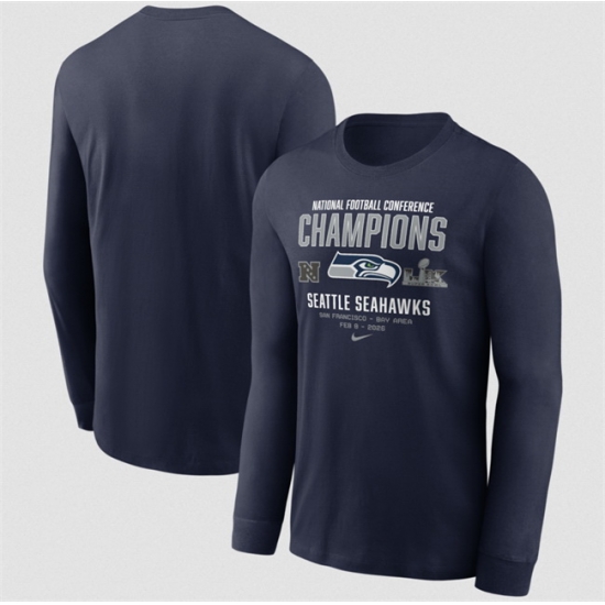 - Men Seattle Seahawks College Navy 2025 NFC Champions Team Nation Long Sleeve T Shirt