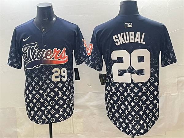 - Men Detroit Tigers Team Big Logo 2024 Navy City Connect Cool Base Limited Stitched
