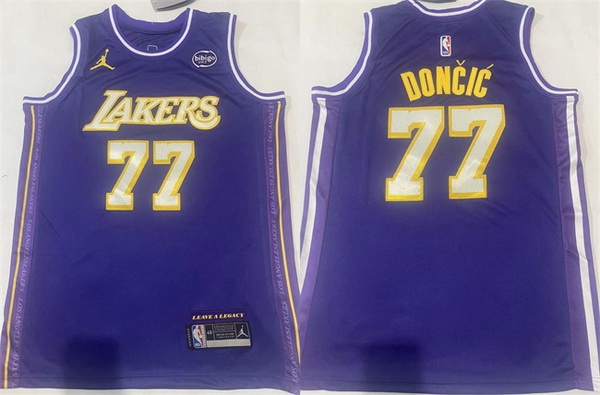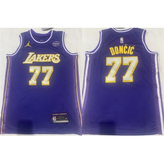 - Men Los Angeles Lakers 77 Luka Doncic Yellow Icon Edition Stitched Basketball Jersey