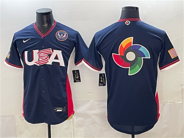 - Men USA Baseball Navy 2026 World Baseball Classic Big Logo Road Stadium Stitched Jersey