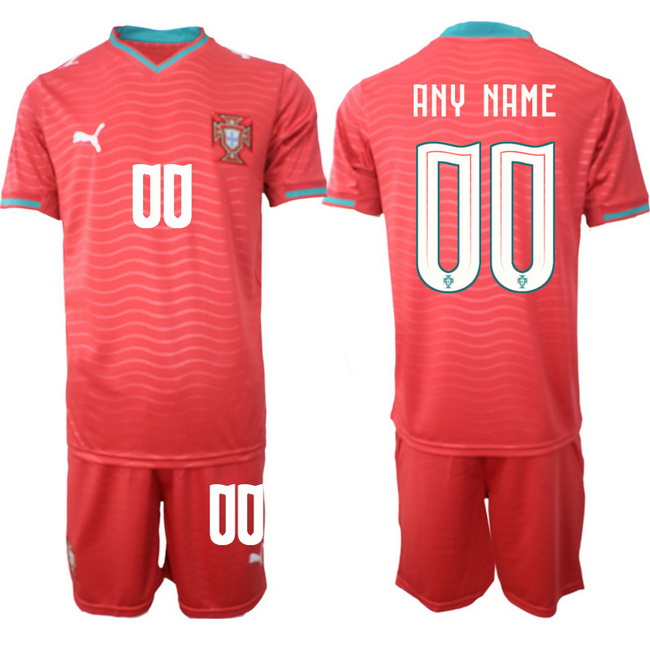 - Men Portugal Team Custom 2024 25 Red Home Soccer Jersey Suit