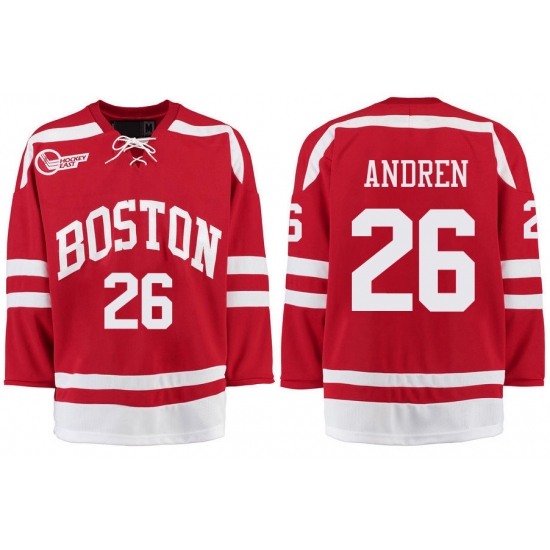 - Boston University Terriers BU 26 Oskar Andren Red Stitched Hockey Jersey