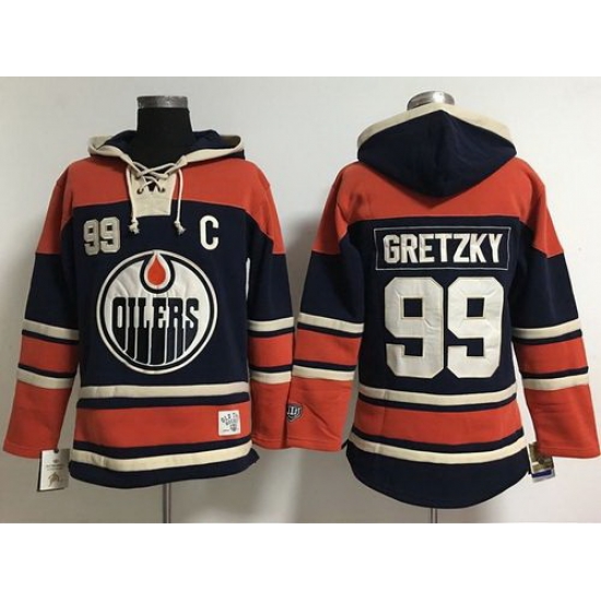 - Edmonton Oilers 99 Wayne Gretzky Navy Blue Women Old Time Lacer NHL Hoodie