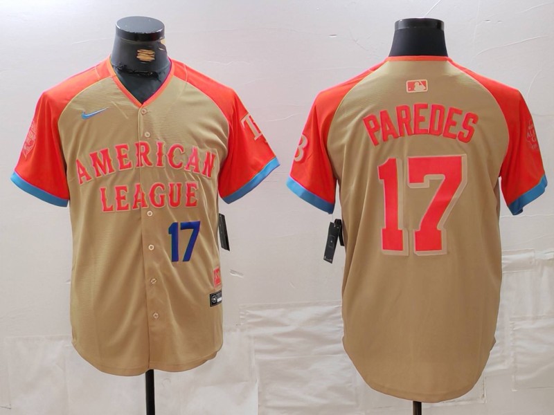 - Men American League 5 Corey Seager Cream 2024 All Star Limited Stitched Baseball Jersey 1