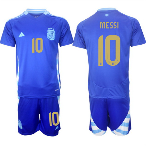 - Men Argentina 10 Lionel Messi Blue 2024 25 Away SoccerJersey Suit