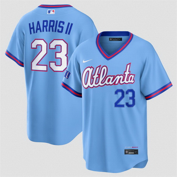 - Men Atlanta Braves 23 Michael Harris II Navy Cool Base Stitched Baseball Jersey