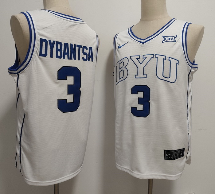 Men BYU Cougars Nike #3 AJ Dybantsa White Sttiched Basketball Jersey
