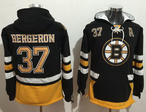 - Men's Boston Bruins #37 Patrice Bergeron Black Ageless Must-Have Lace-Up Pullover Hoodie