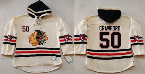 - Men Chicago Blackhawks 50 Corey Crawford Gream Sawyer Hooded Sweatshirt Stitched NHL Jersey