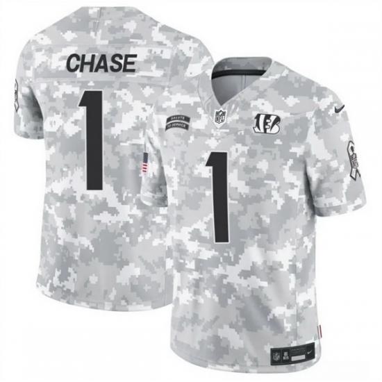 - Men Cincinnati Bengals 1 Ja 27Marr Chase Grey With Patch Cool Base Stitched Baseball Jersey