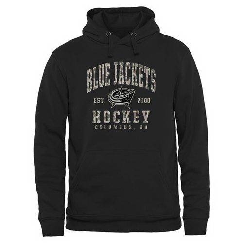 - NHL Mens Columbus Blue Jackets Black Camo Stack Pullover Hoodie