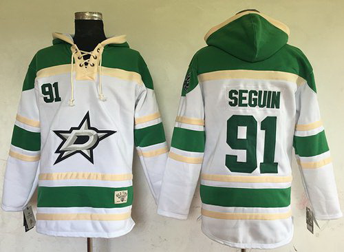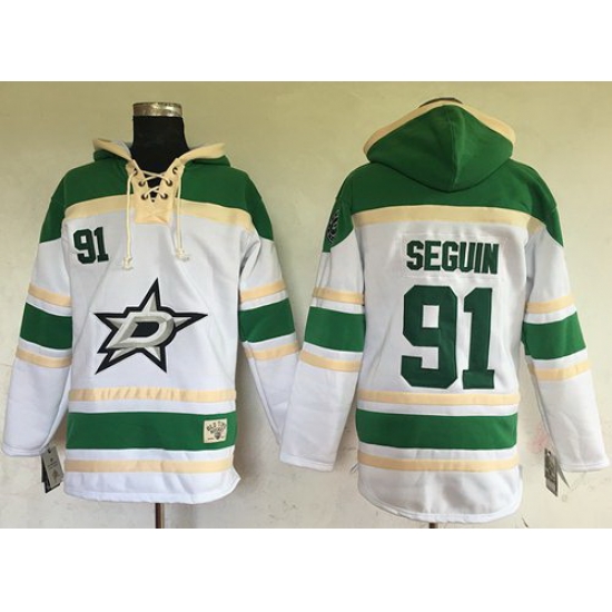 - Men Dallas Stars 91 Tyler Seguin White Sawyer Hooded Sweatshirt Stitched NHL Jersey