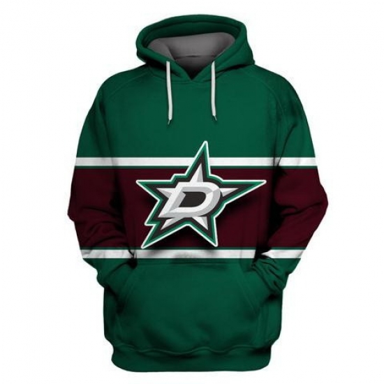 - Men Dallas Stars Blank Black Green Lace Up Pullover Hoodie