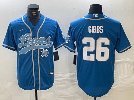 - Men Detroit Lions Team Big Logo Black Cool Base Stitched Baseball Jersey