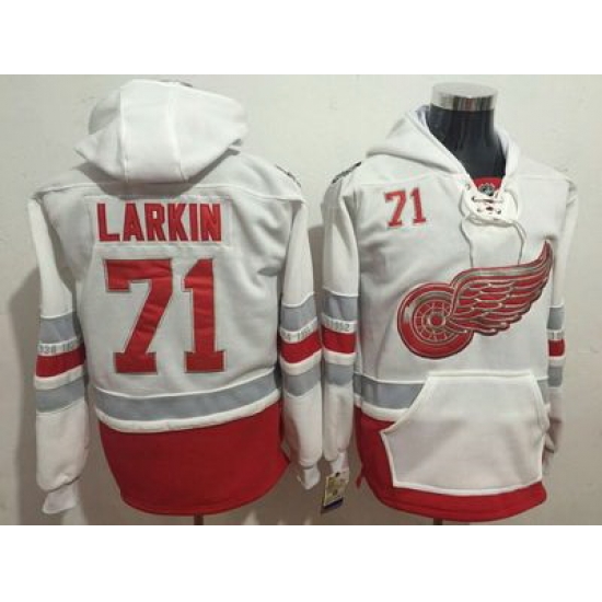 - Men Detroit Red Wings 71 Dylan Larkin Red Sawyer Hooded Sweatshirt Stitched NHL Jersey