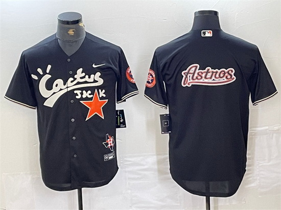 - Men Houston Astros Black Team Big Logo With Patch Cool Base Stitched Baseball Jersey 4