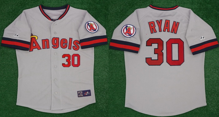 - Men Los Angeles Angels Nolan Ryan #30 Majestic Gray Stitched MLB Jersey