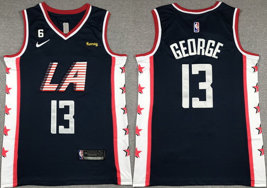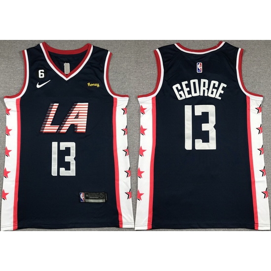 - Men Los Angeles Clippers 13 Paul George Royal With NO 6 Patch Stitched Jersey