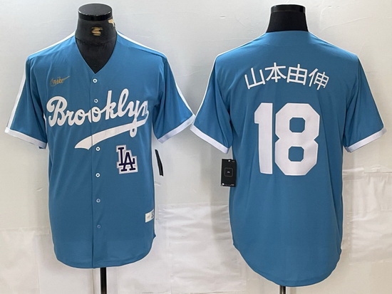 - Men Los Angeles Dodgers Blue Team Big Logo City Connect Cool Base Stitched Baseball Jersey 7