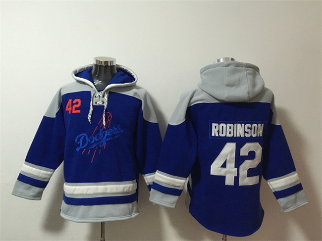 - Men Los Angeles Dodgers 42 Jackie Robinson Blue Ageless Must Have Lace Up Pullover Hoodie