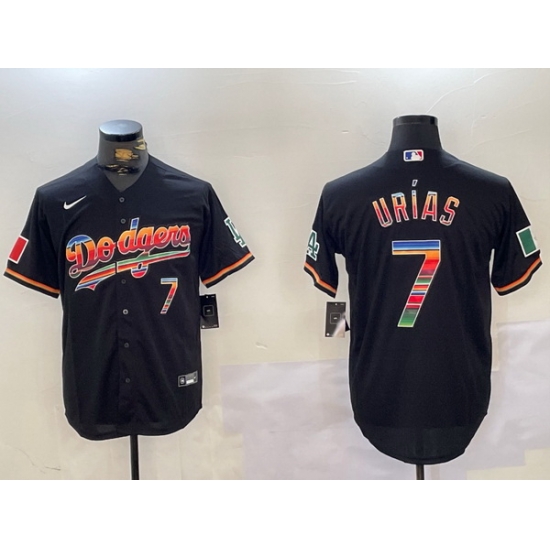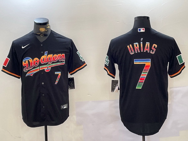 - Men Los Angeles Dodgers 7 Julio Urias Black Cool Base Stitched Jersey