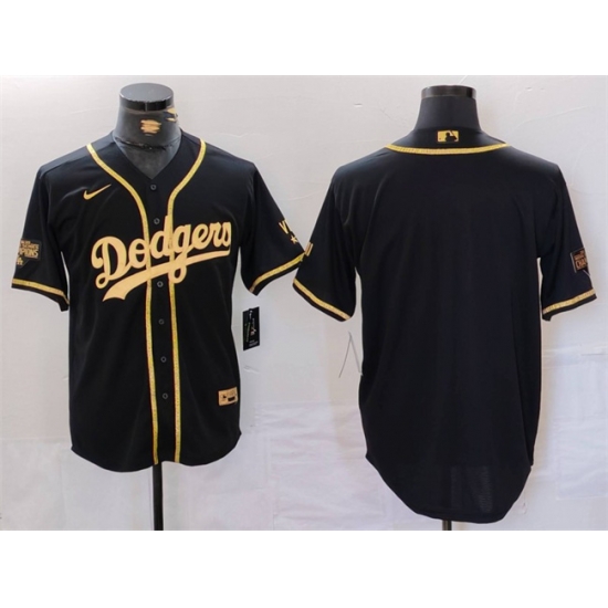 - Men Los Angeles Dodgers Black Team Big Logo Cool Base Stitched Baseball Jersey