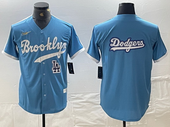 - Men Los Angeles Dodgers Blue Team Big Logo City Connect Cool Base Stitched Baseball Jersey 1
