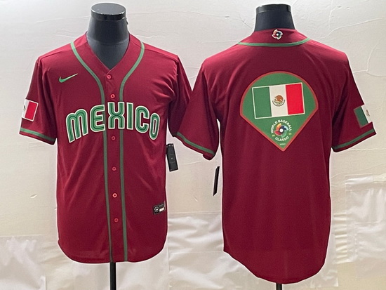 - Men Mexico Baseball 2023 Red World Baseball Big Logo Classic Stitched Jersey