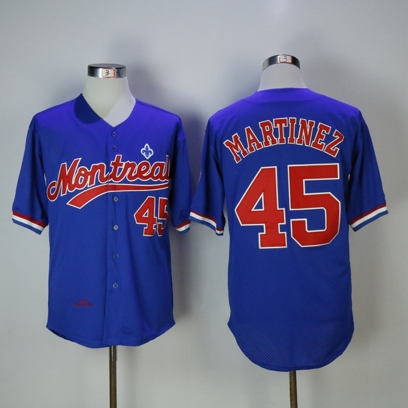 - Men Montreal Expos #45 Pedro Martinez Blue Throwback Jersey