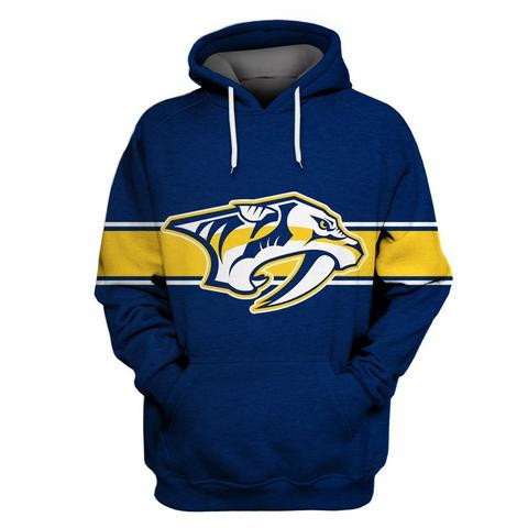 - Men Nashville Predators Blue All Stitched Hooded Sweatshirt