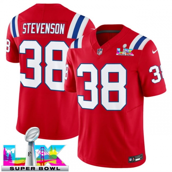 Home>NFL>2025 2026 Super Bowl LX>New England Patriots>Men New England Patriots 38 Rhamondre Stevenson Red 2025 F U S E Super Bowl LX Patch Vapor Limited Stitched Football Jersey