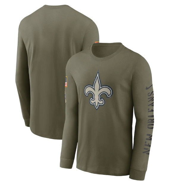 - Men New Orleans Saints Olive 2022 Salute To Service Long Sleeve T Shirt