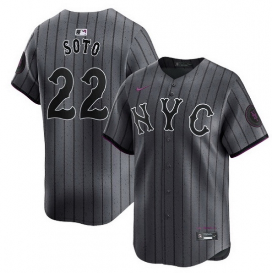 - Men New York Mets Graphite 2024 City Connect Limited Stitched Baseball Jersey 1