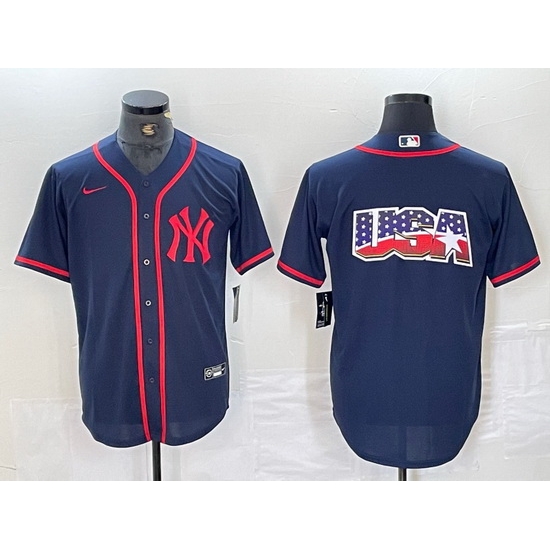 - Men New York Yankees Big LOGO Navy Cool Base Stitched Baseball Jersey 5