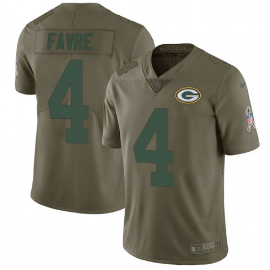 - Men Nike Green Bay Packers 4 Brett Favre Limited Olive 2017 Salute to Service NFL Jersey