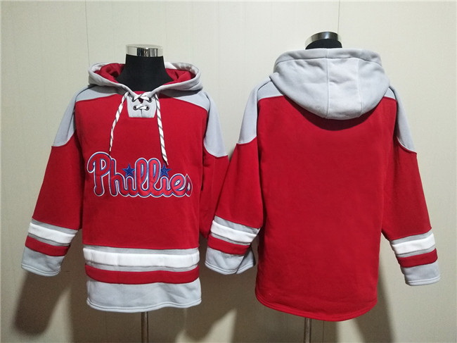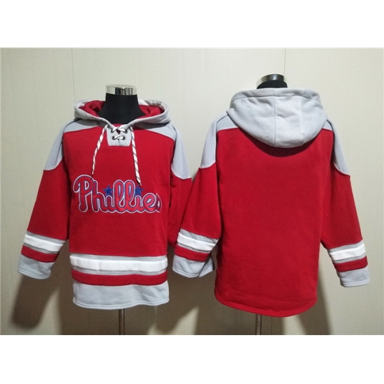 - Men Philadelphia Phillies Blank Red Ageless Must Have Lace Up Pullover Hoodie