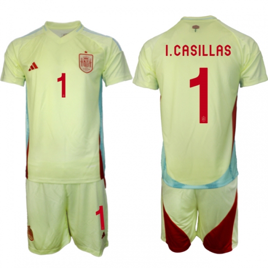 - Men Spain Team 1 Iker Casillas 2024 25 Red Home Soccer Jersey Suit