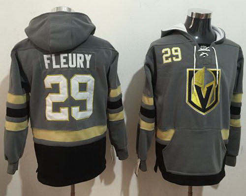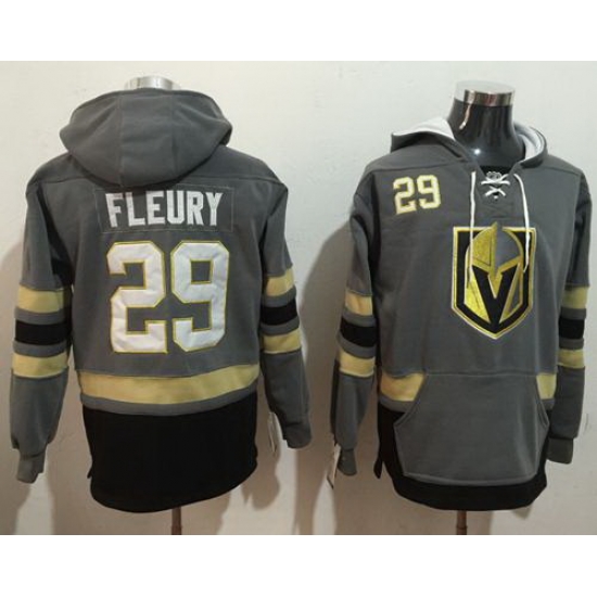 - Men Vegas Golden Knights 29 Marc Andre Fleury Grey Name 26 Number Pullover NHL Hoodie