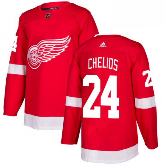 - Mens Adidas Detroit Red Wings 24 Chris Chelios Authentic White Away NHL Jersey