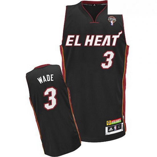 - Mens Nike Miami Heat 3 Dwyane Wade Authentic Black Black Fashion Hardwood Classics NBA Jersey