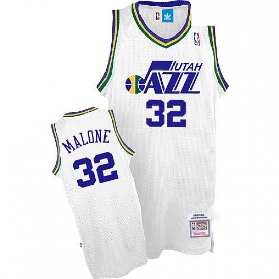 - Jazz 32 Karl Malone White Hardwood Classics Jersey