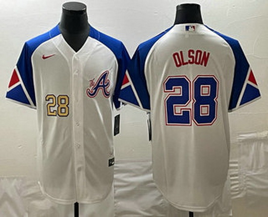 - Men's Atlanta Braves #28 Matt Olson Number 2023 City Connect Cool Base Stitched Jersey