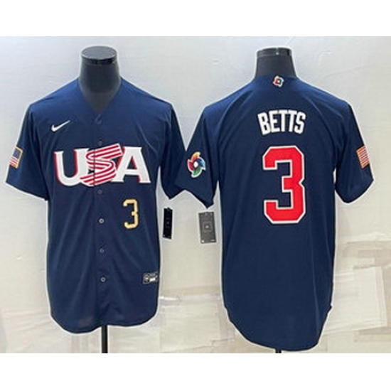 - Men's USA Baseball #3 Mookie Betts Number 2023 Navy World Baseball Classic Stitched Jerseys