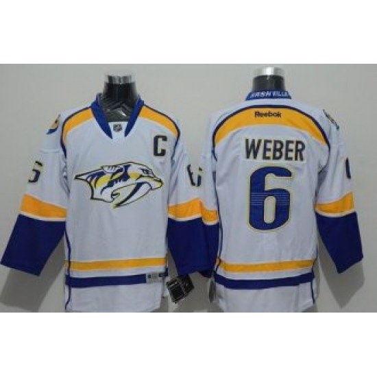 - Nashville Predators #6 Shea Weber White Road Stitched NHL Jersey