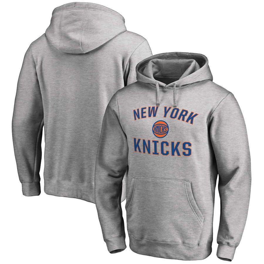 - Men New York Knicks Heathered Gray Off The Bench Color Block Pullover Hoodie