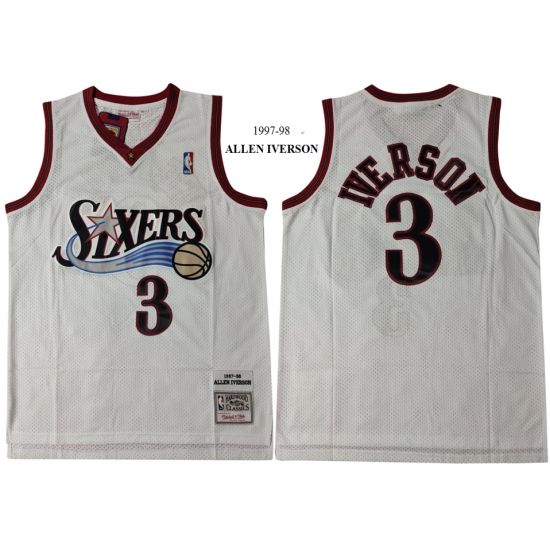 - 76ers 3 Allen Iverson Blue Printed Nike Swingman Jersey