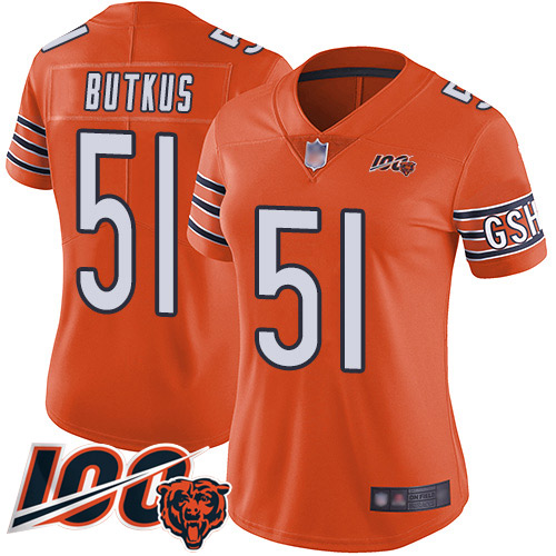 - Women Chicago Bears 72 William Perry Orange Alternate 100th Season Limited Football Jersey