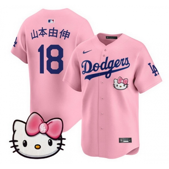 Women Los Angeles Dodgers 18 Yoshinobu Yamamoto Pink 2025 Hello Kitty Vapor Limited Stitched Baseball Jersey