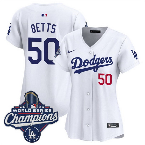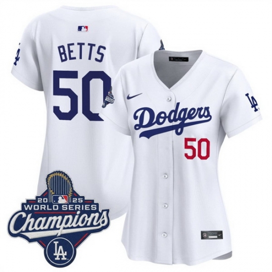 - Women Los Angeles Dodgers 50 Mookie Betts Cream Stitched Jersey 1
