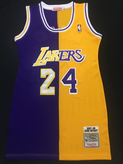 - Women Los Angeles Lakers 24 Kobe Bryant Dress Stitched Jersey Yellow Purple Split II